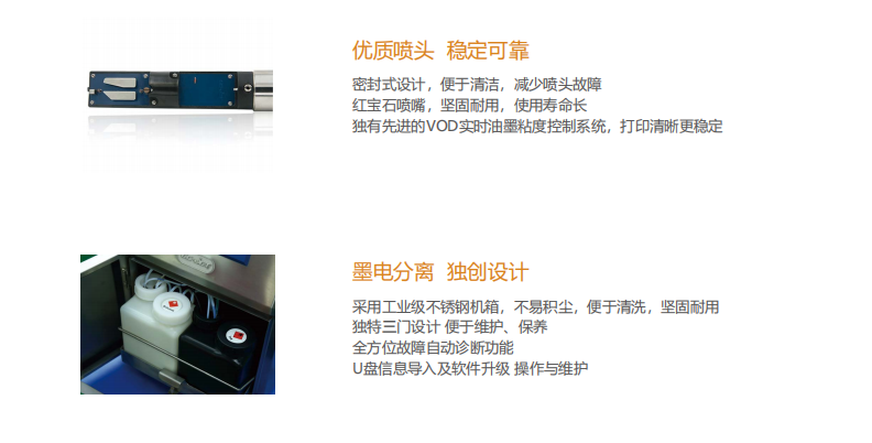 主要包括小字符喷码机、高解析喷码机、热发泡喷码机、手持喷码机等,随着高端硬件品牌的普及、在硬件质量方面差异已经不大,均可以实现高强度、连续运转;而差异较大的方面是软件系统平台,是否智能、是否可以方便地与工厂内部设备、系统对接、联机成为重中之重。