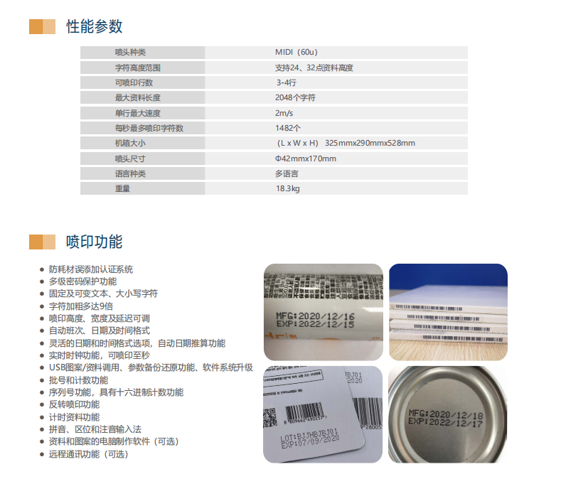 2.喷印批号、标识、产品名称、有效期、号码等;在包装某个部位使用