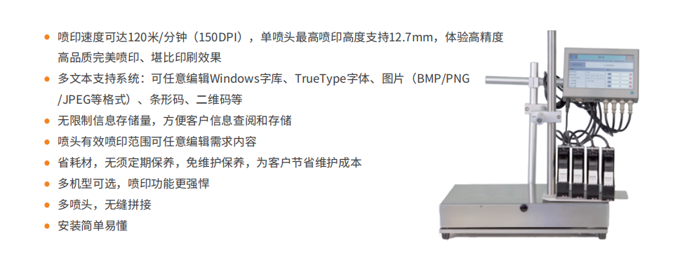 大字符喷码机的用途:有利于产品识别。通过在产品上标注特殊的标识、品牌名称和商标图案等,可以使产品在竞争中脱颖而出,提高品牌的知名度。产品跟踪记录的需要。产品的批号、班次或生产日期直接印在产品上,使得每一件产品均具良好的可追溯性,大大方便企业的质量管理及产品的区域管理。防止假冒。制造商常可通过对产品的标识预防、抑制假冒,新技术的应用使得那些合法生产厂商能够一直领先于制假者。增加产品的附加值。在塑料管材上标识商标或生产厂家的名称意味着一种承诺,消费者通常认为这是一个质量跟踪比较完善、对产品质量负责的企业的产品。提高生产效率,降低生产成本。喷码机在不同行业的选择喷码机在食品,饮料,建材,电线电缆,医药,化工,电子等等众多行业都有应用,所以,选择最适合产品种类的喷码机尤其重要。